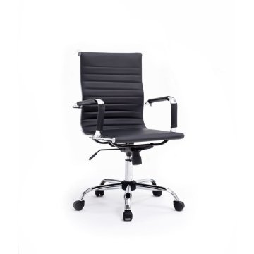SILLA DE OFICINA EQUIP RESPALDO MEDIO COLOR NEGRO RECUBRIMIENTO PU DE ALTA CALIDAD ERGONOMICA