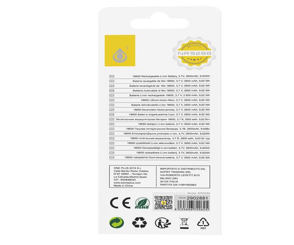 Bateria de litio recargable Icr 18650 / 2600mAh / 3.7 V / Negro / NR9288 / One+ has been added to your Wishlist.