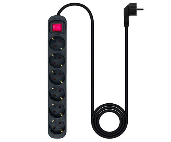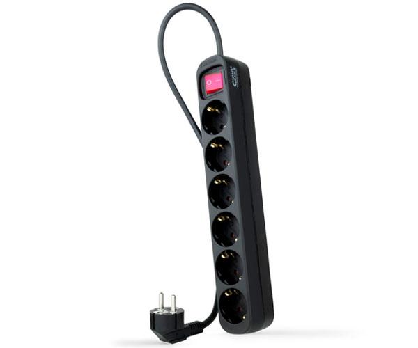 Regleta de enchufes de 6 tomas con interruptor, 1.4 metros Negra