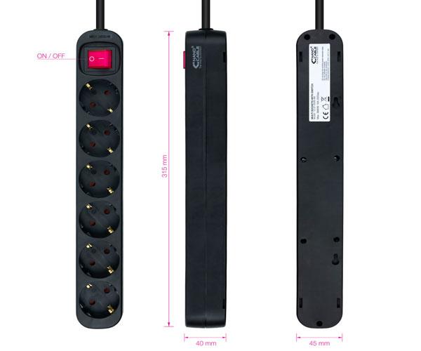 Regleta de enchufes de 6 tomas con interruptor